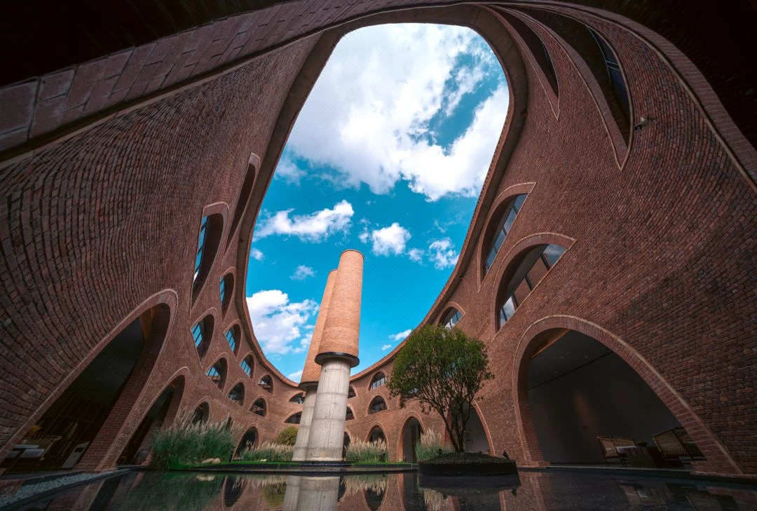 由雲南藝術家羅旭設計,主體建築採用百萬塊本地紅磚砌築,融合後現代主義與工業風,形似「萬花筒」,與周邊葡萄園、薰衣草田構成藝術景觀。