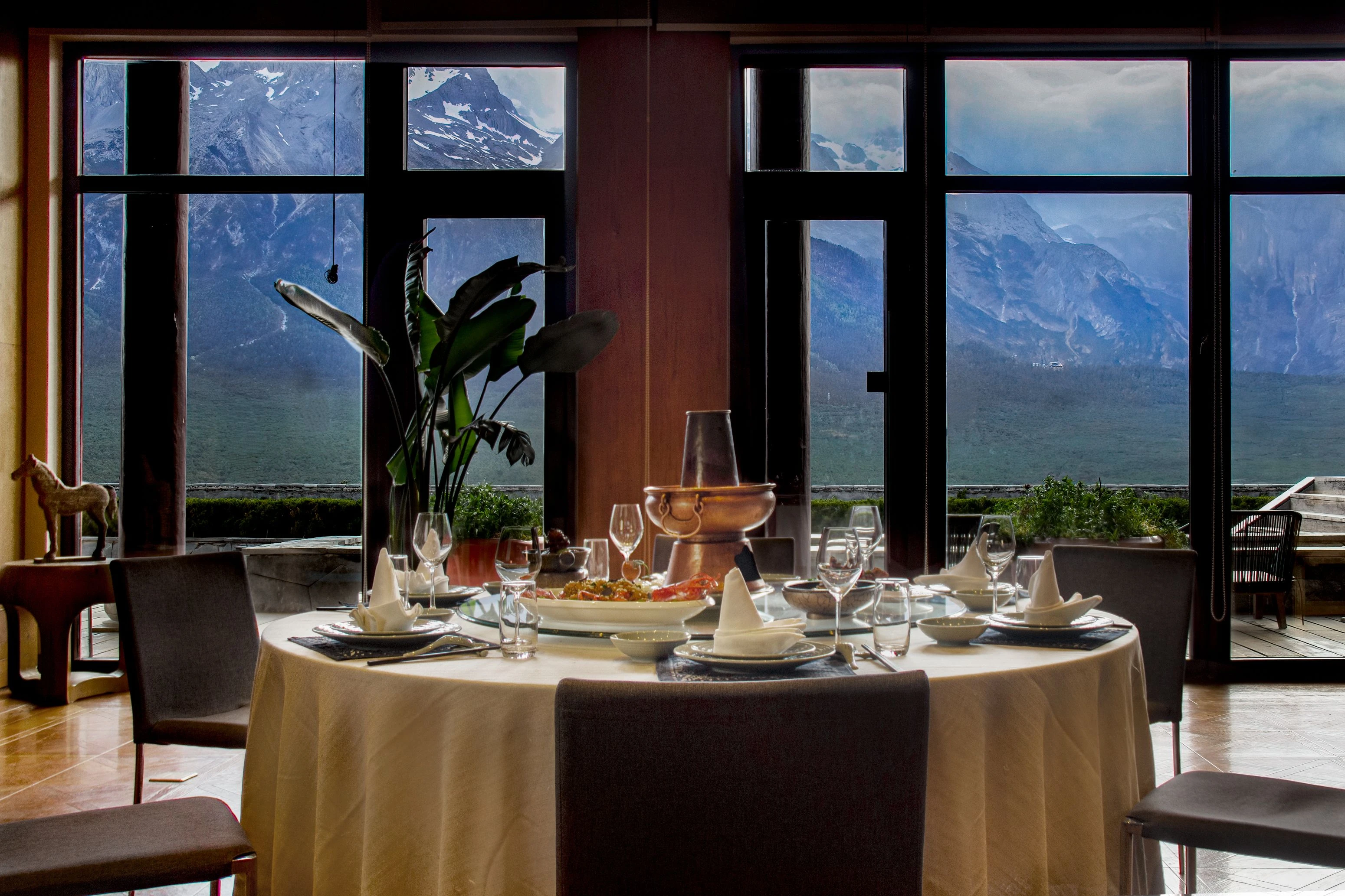 餐桌旁獨享絕美的雪山景觀。